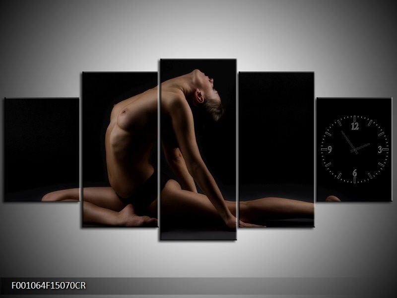 Klok schilderij Vrouw | Bruin, Zwart | 150x70cm 5Luik