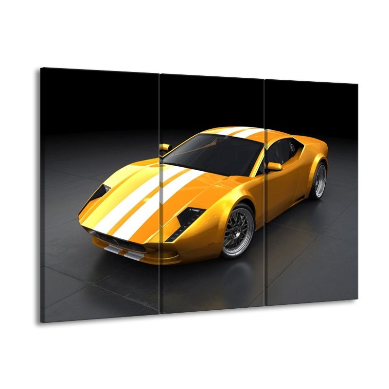 Canvas schilderij Auto | Geel, Wit, Grijs | 90x60cm 3Luik