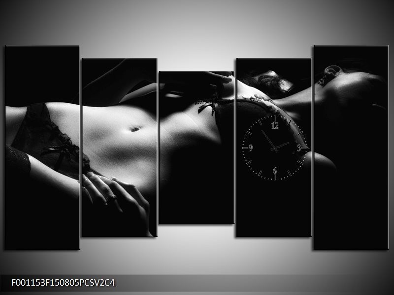 Klok schilderij Lichaam | Grijs, Zwart, Wit | 150x80cm 5Luik