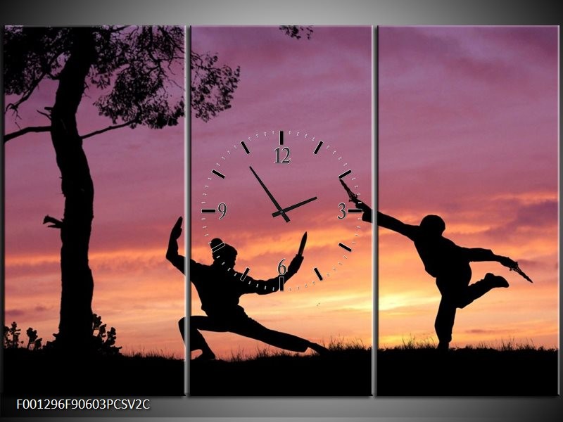 Klok schilderij Sport | Paars, Wit, Geel | 90x60cm 3Luik