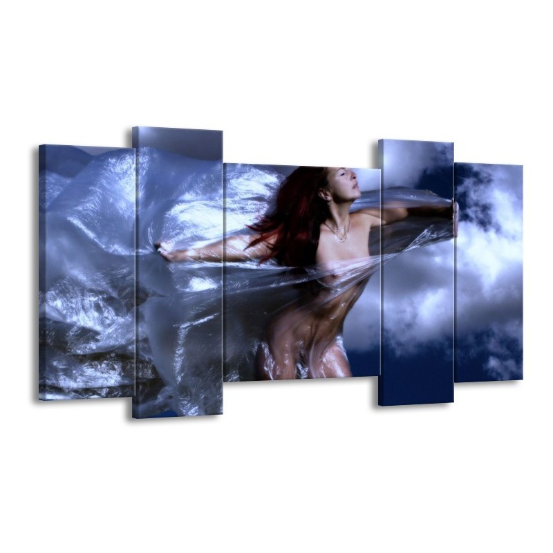 Canvas schilderij Vrouw | Geel, Blauw, Zwart | 120x65 5Luik