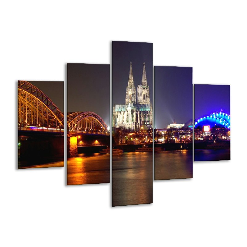 Glas schilderij Brug | Wit, Goud, Blauw | 100x70cm 5Luik