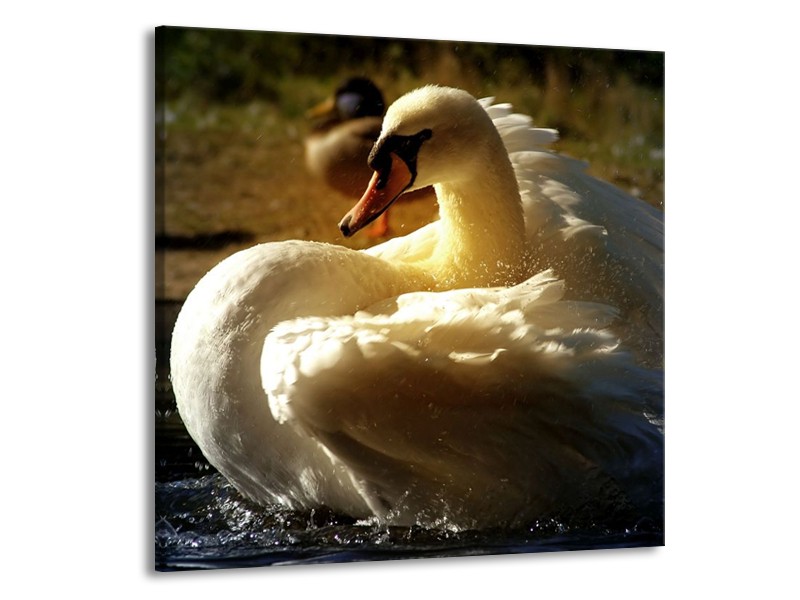 Canvas schilderij Zwaan | Wit, Geel, Grijs | 50x50cm 1Luik