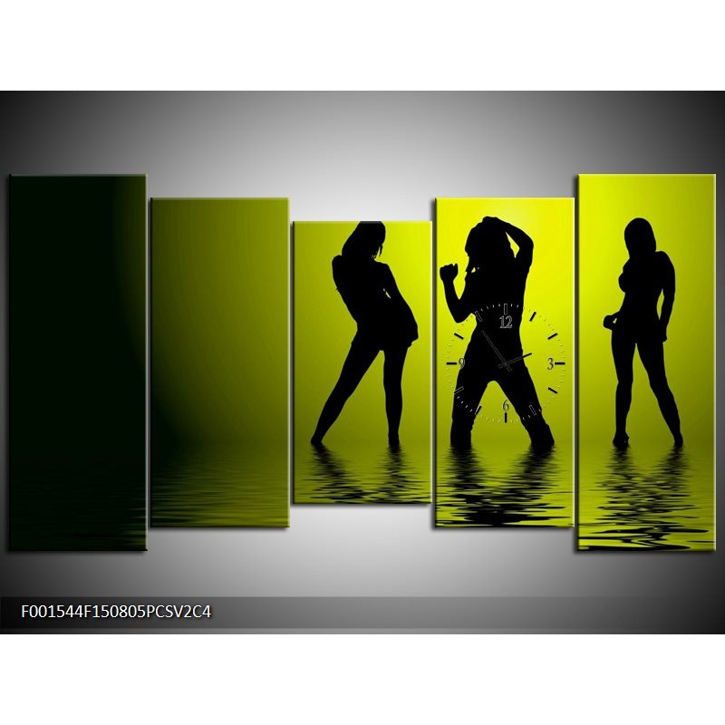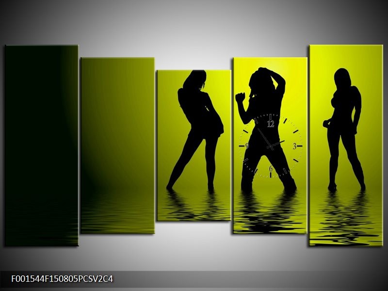 Klok schilderij Dansen | Groen, Zwart | 150x80cm 5Luik