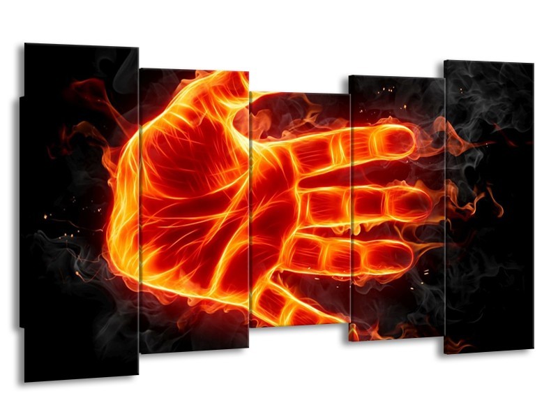 Canvas schilderij Hand | Oranje, Geel, Zwart | 150x80cm 5Luik