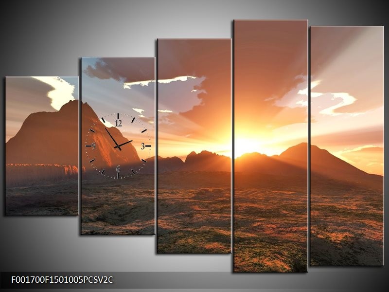 Klok schilderij Zonsondergang | Geel, Bruin, Wit | 150x100cm 5Luik