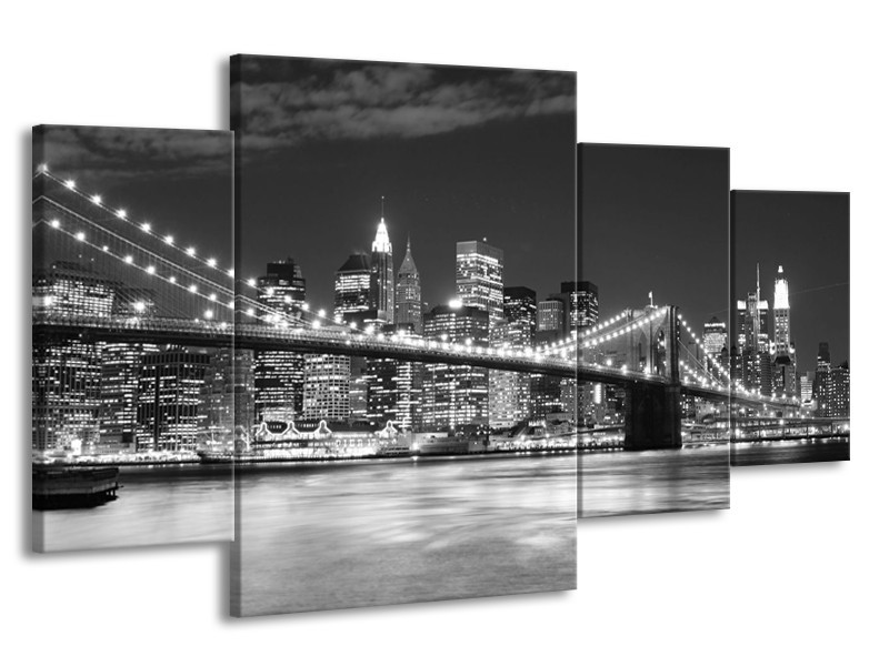 Canvas schilderij Brug | Zwart, Wit, Grijs | 160x90cm 4Luik