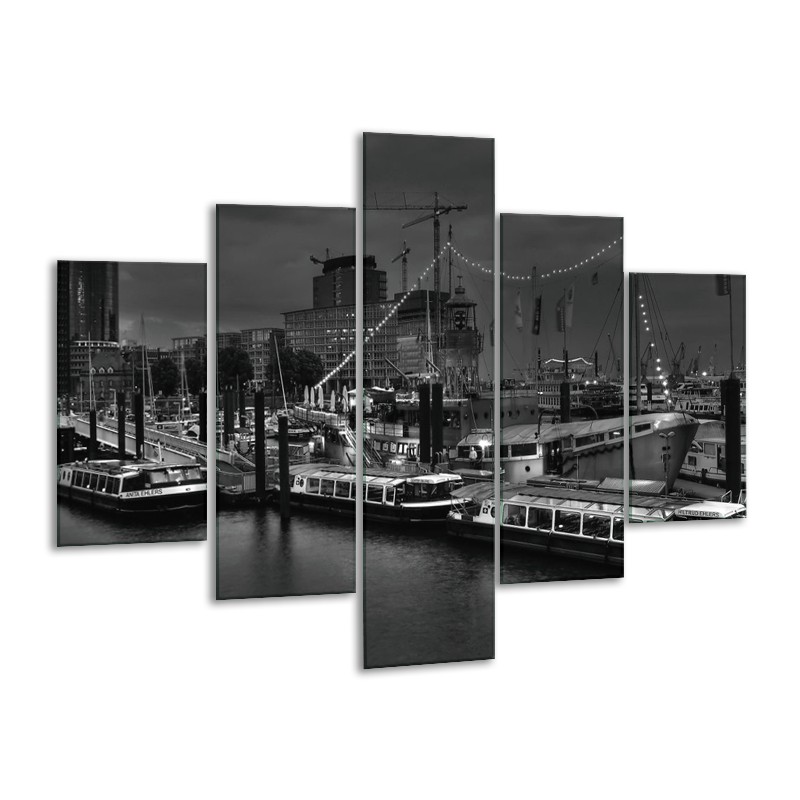 Canvas schilderij Boot | Grijs, Zwart, Wit | 100x70cm 5Luik