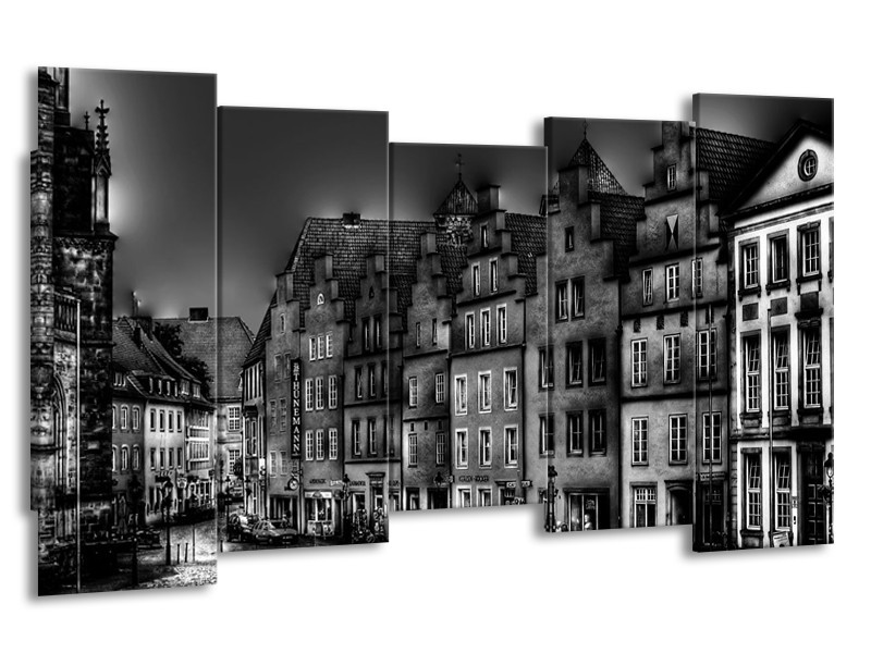 Canvas schilderij Gebouw | Grijs, Zwart, Wit | 150x80cm 5Luik