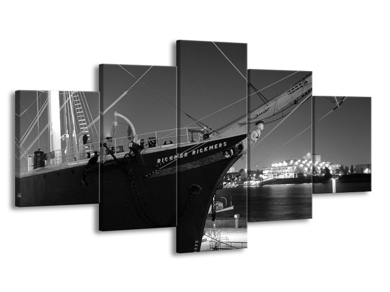 Canvas schilderij Boot | Grijs, Zwart, Wit | 150x80cm 5Luik