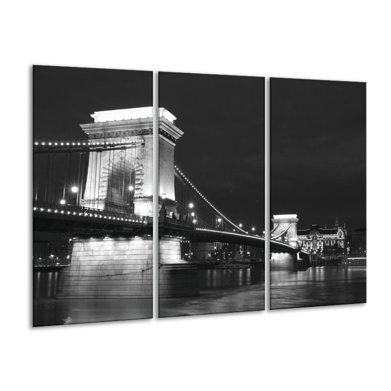 Canvas schilderij Brug | Grijs, Zwart, Wit | 120x80cm 3Luik