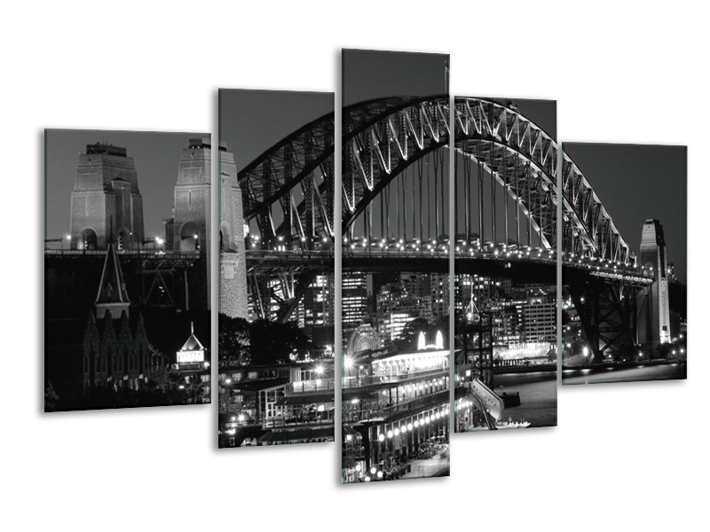 Canvas schilderij Brug | Grijs, Zwart, Wit | 170x100cm 5Luik