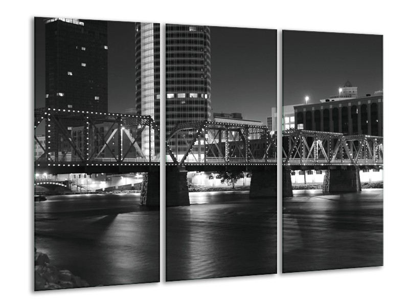 Glas schilderij Brug | Grijs, Zwart, Wit | 120x80cm 3Luik