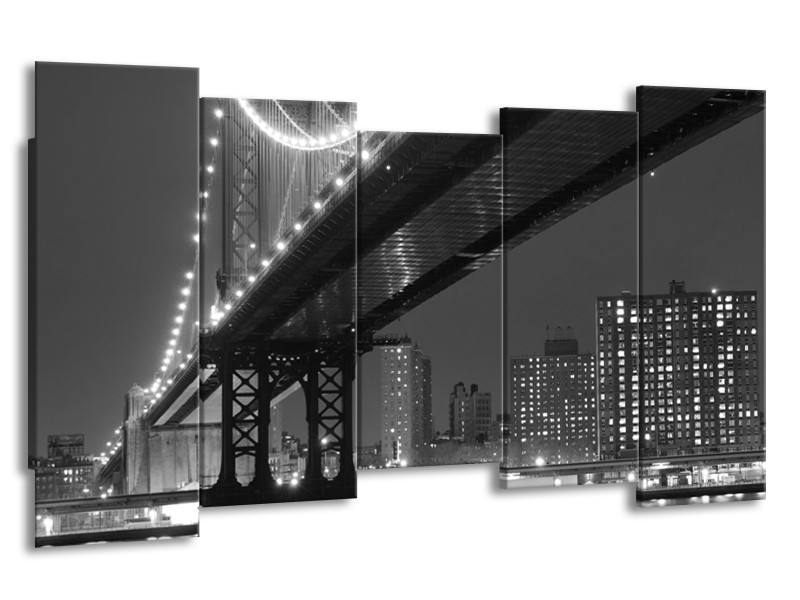 Canvas schilderij Brug | Grijs, Zwart, Wit | 150x80cm 5Luik
