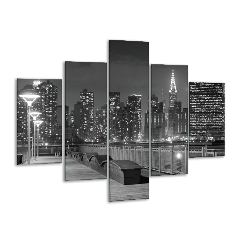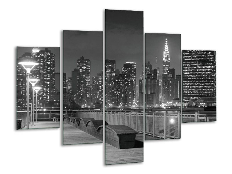 Canvas schilderij Stad | Grijs, Zwart, Wit | 100x70cm 5Luik