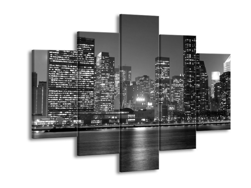 Canvas schilderij Stad | Grijs, Zwart, Wit | 150x105cm 5Luik
