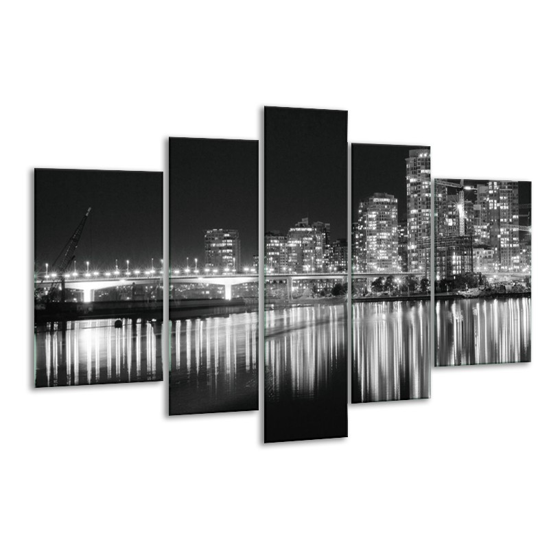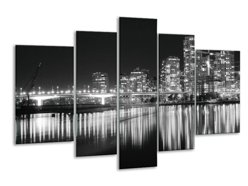 Canvas schilderij Stad | Grijs, Zwart, Wit | 170x100cm 5Luik