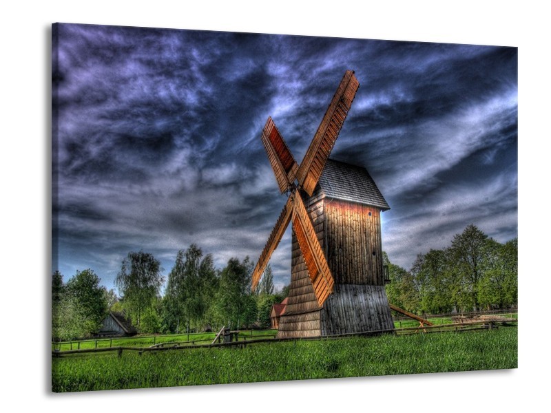 Glas schilderij Molen | Geel, Bruin, Blauw | 100x70cm 1Luik