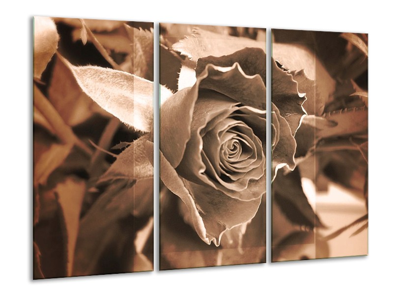 Canvas schilderij Roos | Sepia, Bruin | 120x80cm 3Luik