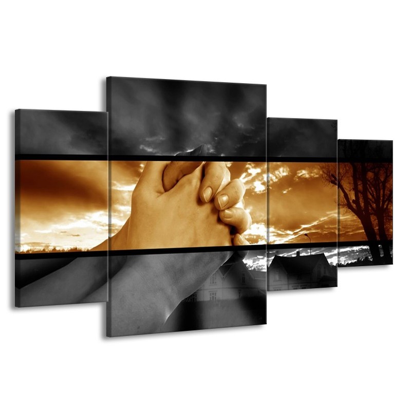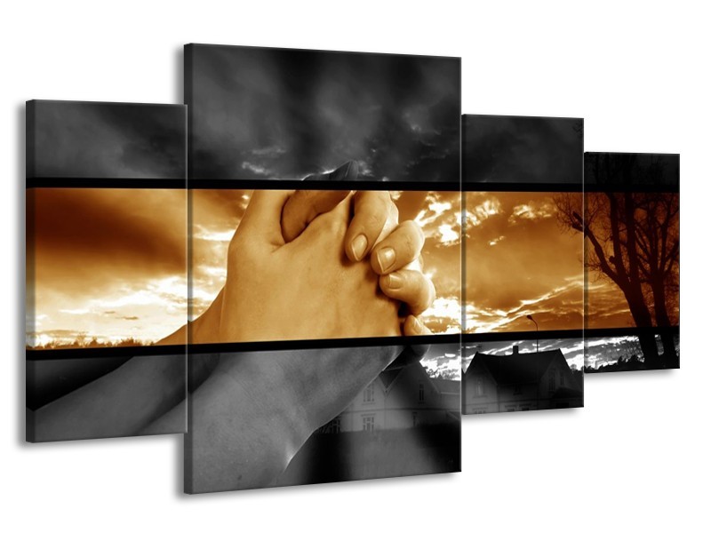 Canvas schilderij Handen | Sepia, Bruin | 160x90cm 4Luik