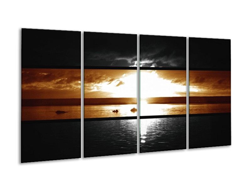 Canvas schilderij Zonsondergang | Sepia, Bruin | 160x80cm 4Luik