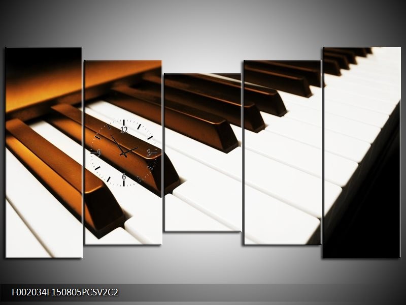 Klok schilderij Piano | Bruin, Zwart, Wit | 150x80cm 5Luik