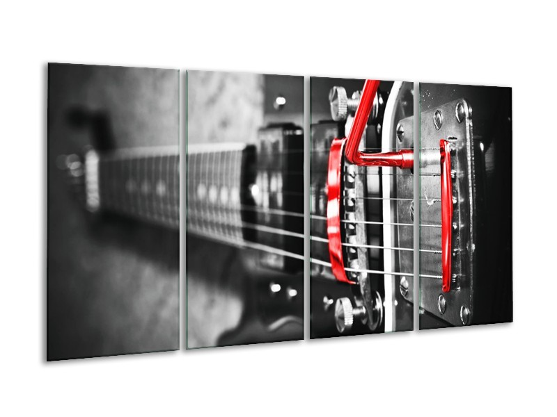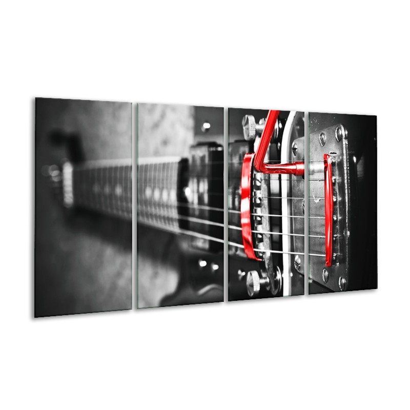 Glas schilderij Gitaar | Zwart, Grijs, Rood | 160x80cm 4Luik