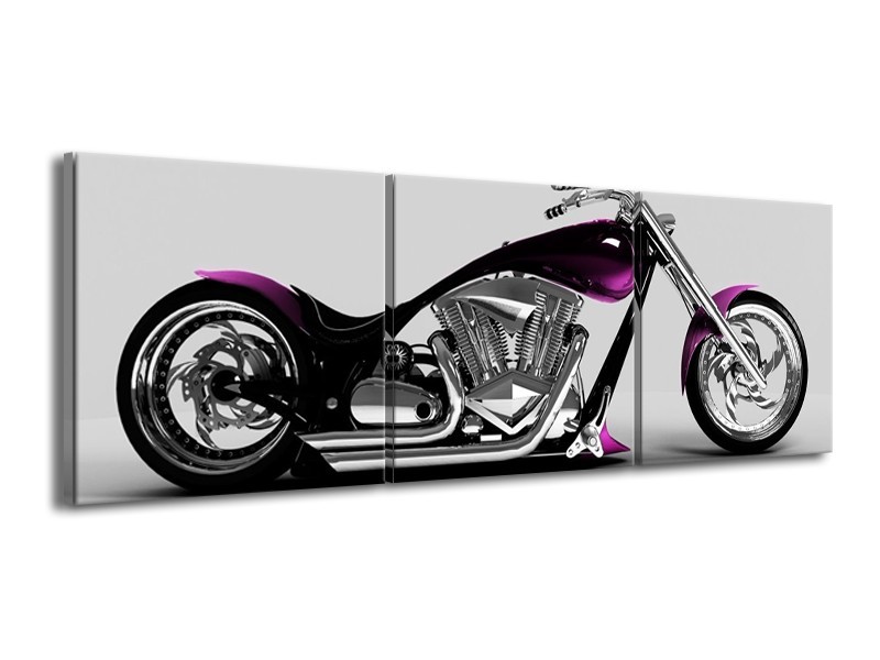 Glas schilderij Motor | Grijs, Zwart, Paars | 150x50cm 3Luik