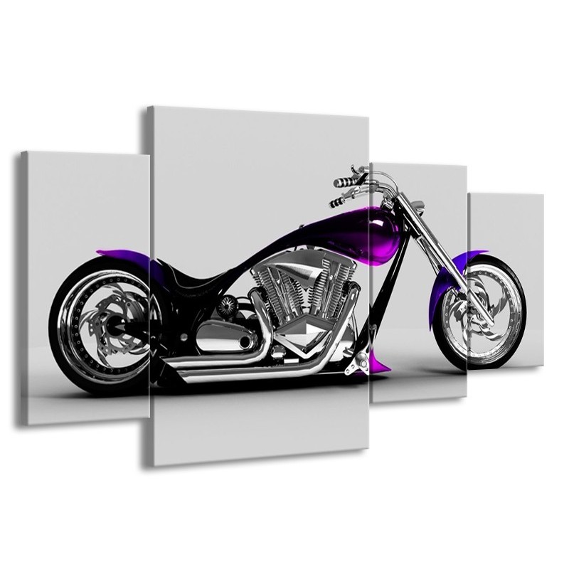 Canvas schilderij Motor | Grijs, Zwart, Paars | 160x90cm 4Luik