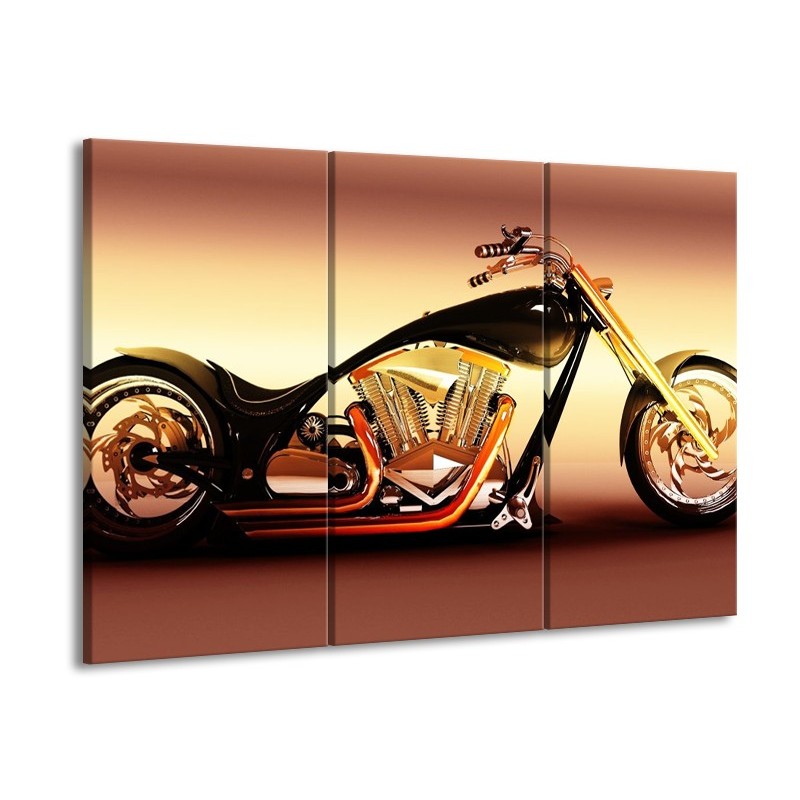 Canvas schilderij Motor | Oranje, Bruin, Geel | 90x60cm 3Luik