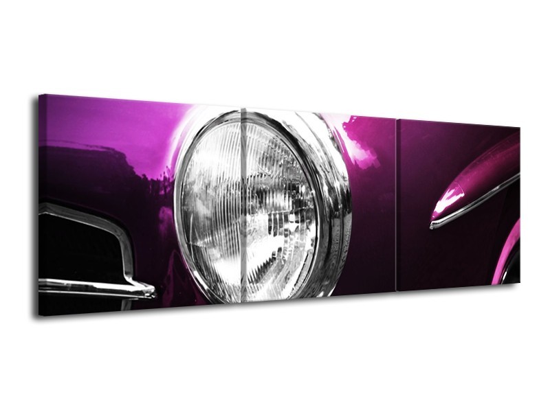 Canvas schilderij Auto | Paars, Wit, Zilver | 120x40cm 3Luik