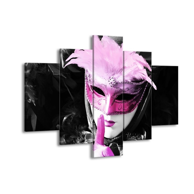 Canvas schilderij Masker | Zwart, Grijs, Paars | 150x105cm 5Luik