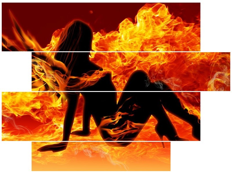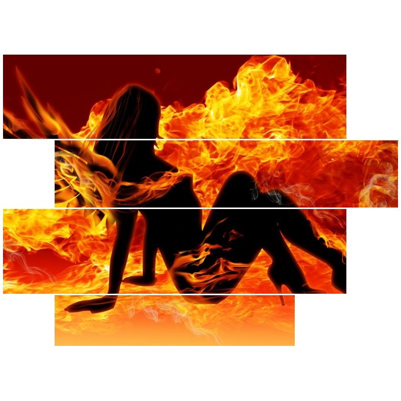 Glas schilderij Vrouw | Zwart, Oranje, Geel | 115x85cm 4Luik