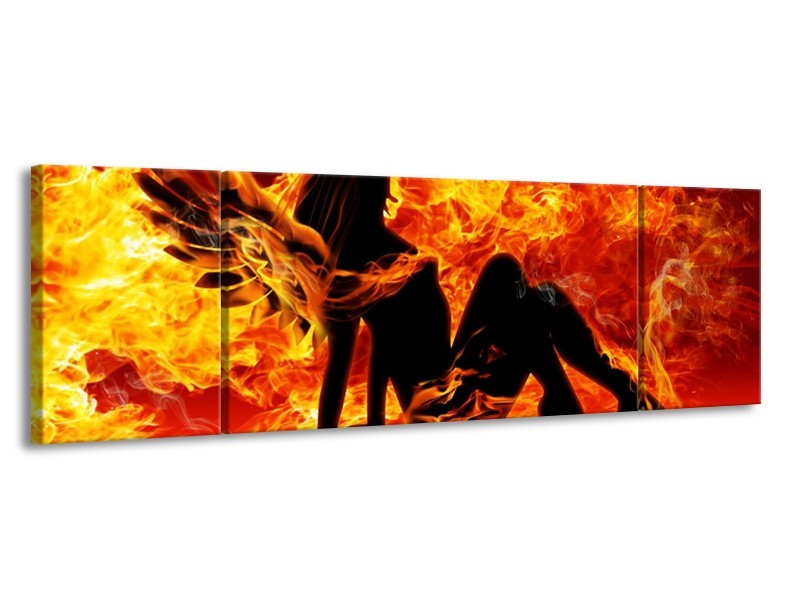 Canvas schilderij Vrouw | Zwart, Oranje, Geel | 170x50cm 3Luik