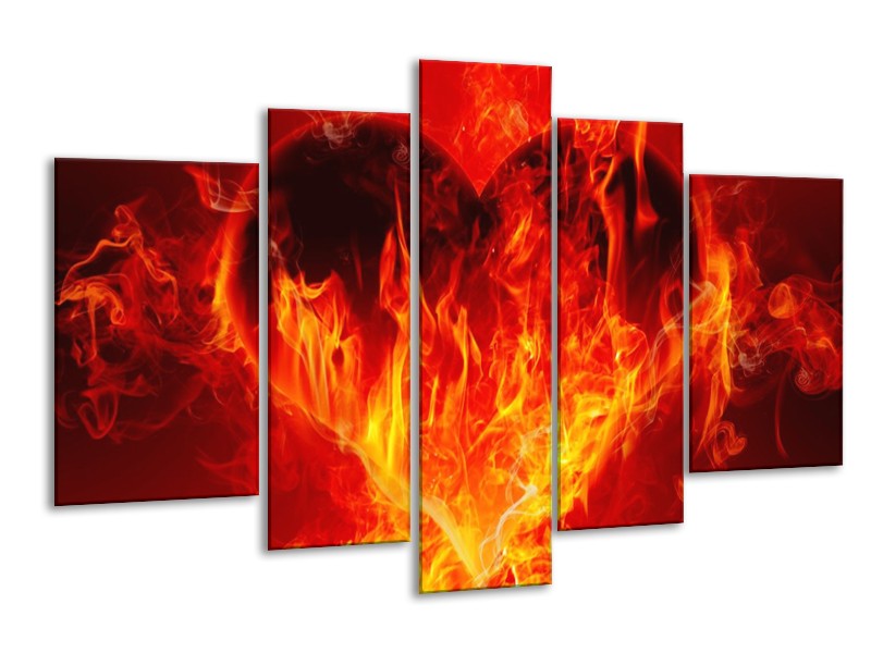 Canvas schilderij Hart | Zwart, Oranje, Geel | 170x100cm 5Luik
