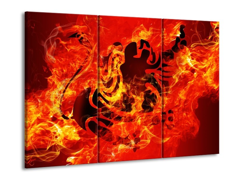 Canvas schilderij Vuur | Zwart, Oranje, Geel | 90x60cm 3Luik