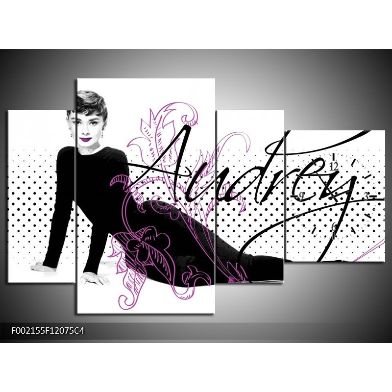 Klok schilderij Audrey | Zwart, Wit, Paars | 120x75cm 4Luik