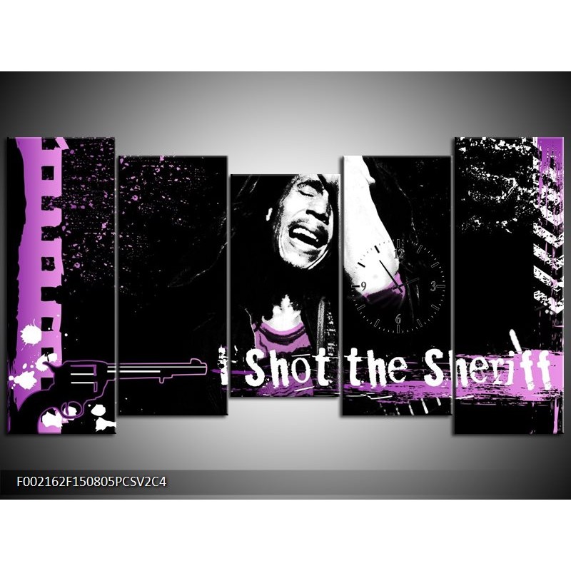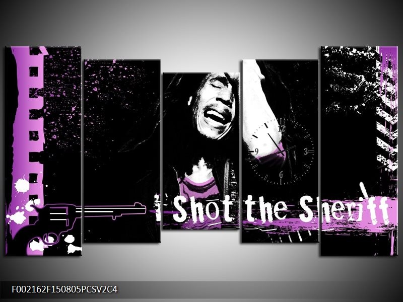 Klok schilderij Muziek | Zwart, Wit, Paars | 150x80cm 5Luik
