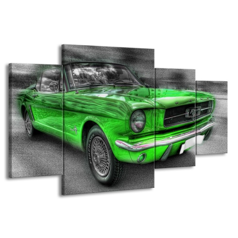 Canvas schilderij Mustang | Zwart, Grijs, Groen | 160x90cm 4Luik