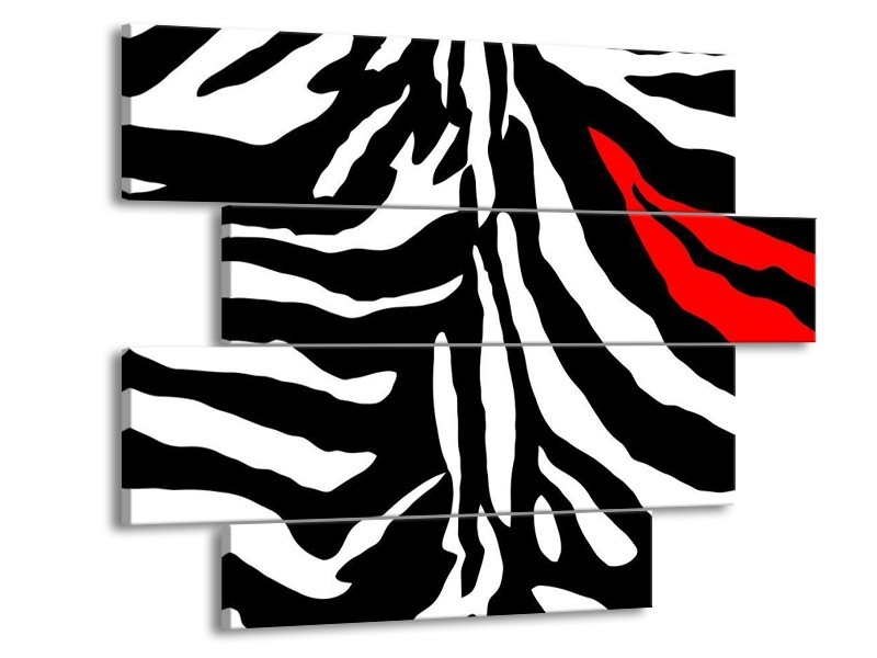 Glas schilderij Abstract | Zwart, Wit, Rood | 115x85cm 4Luik