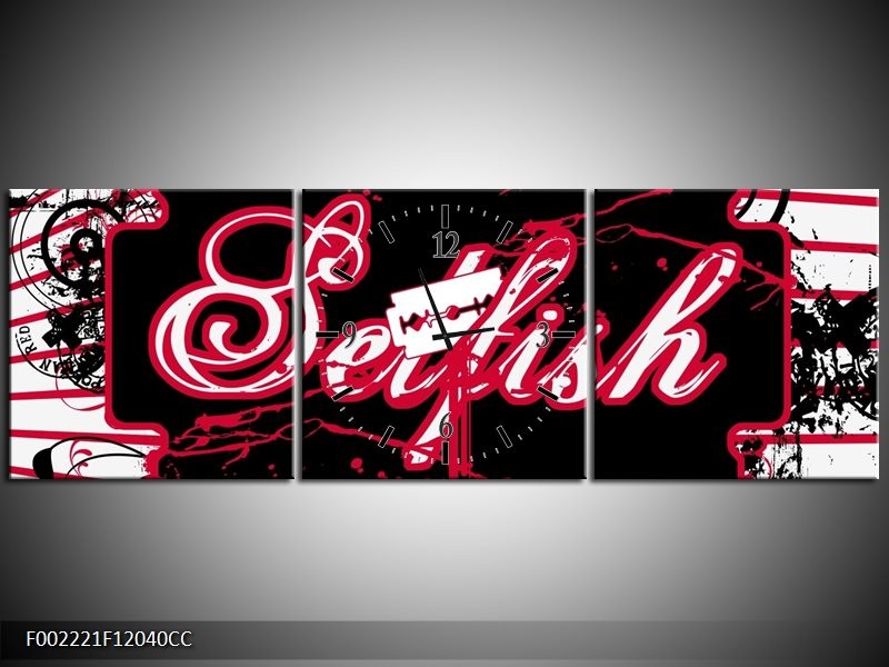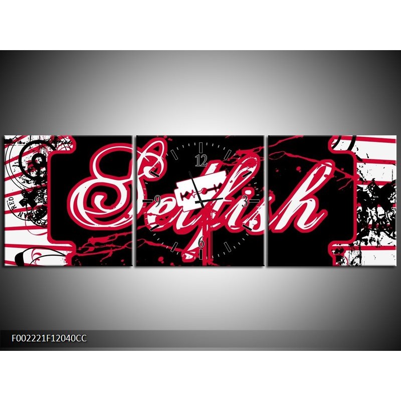 Klok schilderij Popart | Zwart, Wit, Rood | 120x40cm 3Luik
