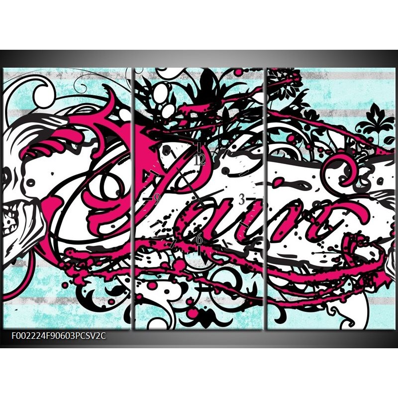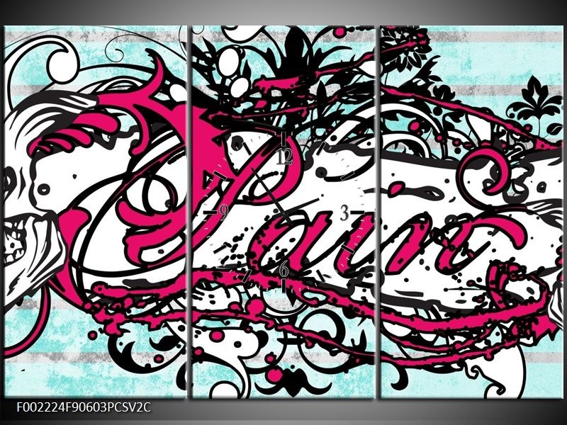 Klok schilderij Popart | Zwart, Wit, Roze | 90x60cm 3Luik