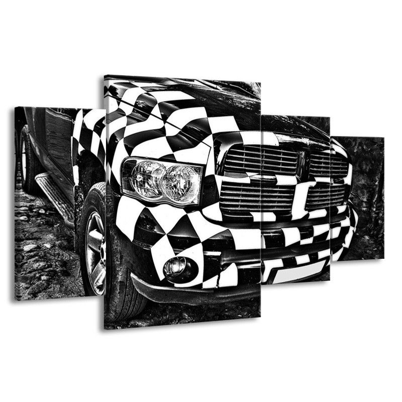 Canvas schilderij Auto | Zwart, Wit, Grijs | 160x90cm 4Luik