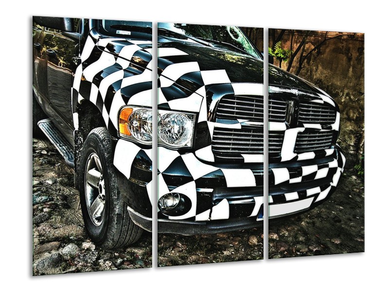 Canvas schilderij Auto | Zwart, Wit, Blauw | 120x80cm 3Luik