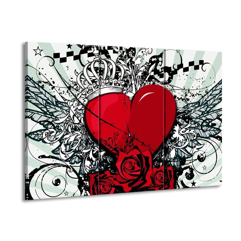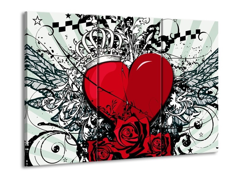Canvas schilderij Hart | Zwart, Rood, Wit | 90x60cm 3Luik