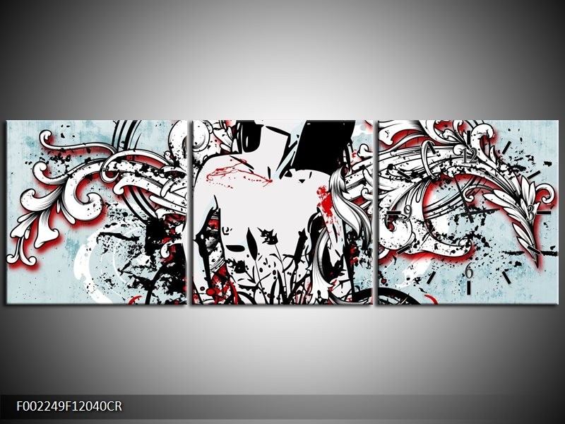 Klok schilderij Popart | Zwart, Rood, Wit | 120x40cm 3Luik