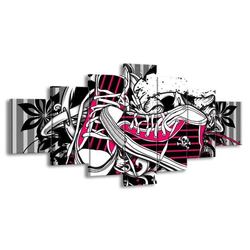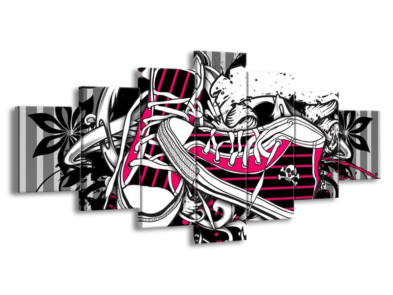 Canvas schilderij Popart | Zwart, Roze, Wit | 210x100cm 7Luik