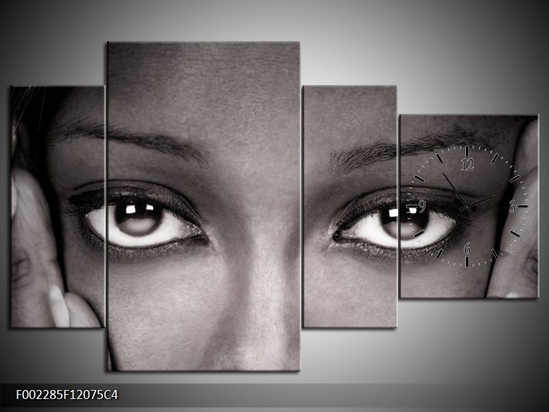 Klok schilderij Gezicht | Grijs, Wit, Zwart | 120x75cm 4Luik