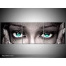 Klok schilderij Gezicht | Zwart, Wit, Blauw | 120x40cm 3Luik
