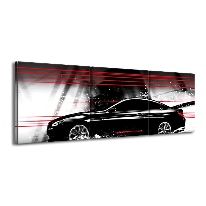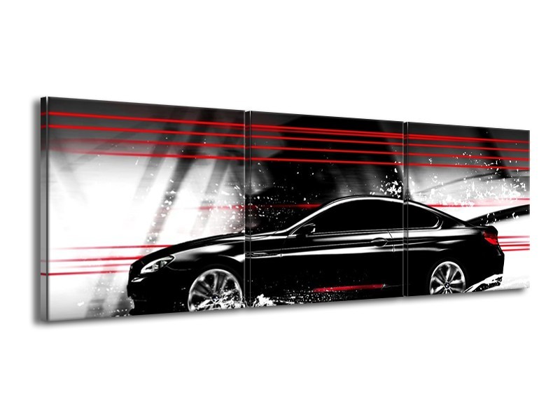 Canvas schilderij Auto | Zwart, Rood, Grijs | 150x50cm 3Luik